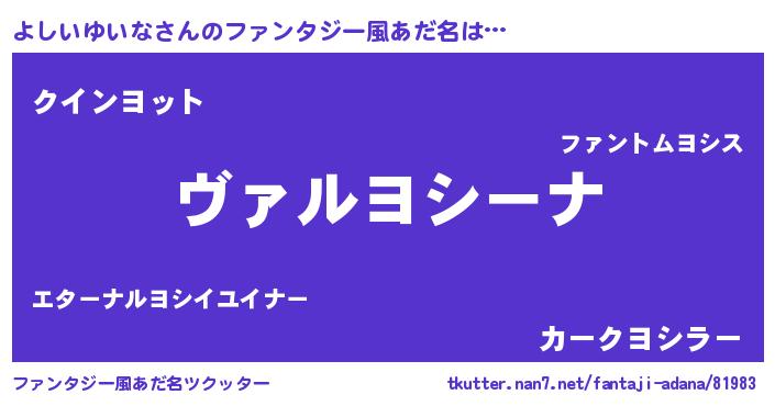 | 意味不明あだ名 | 『住所不定無職よしいゆいな(7歳)』 |