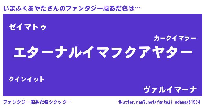 | 意味不明あだ名 | 『いまふくあやたフォーエバー』 |