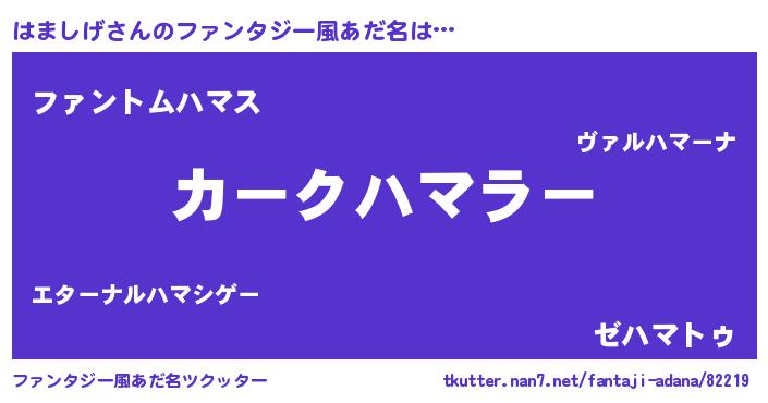 | ヒーロー風カッコイイあだ名 | 『幻影騎士ハマ』『超時空戦士ハマシゲ』 |