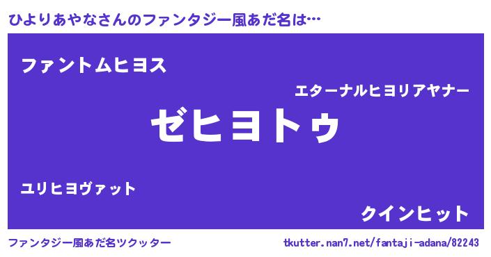 | 意味不明あだ名 | 『自称ひよりあやな』 |