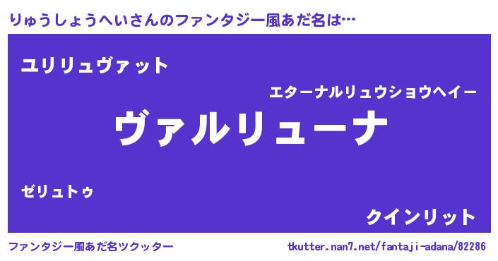| 男性向けラノベタイトル風あだ名 | 『魔弾の王とりゅうしょうへい』 |