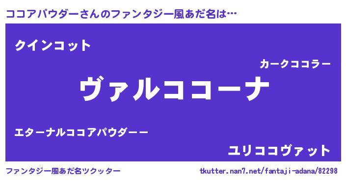 | 男性向けラノベタイトル風あだ名 | 『この素晴らしい世界にココアパウダーを!』 |
