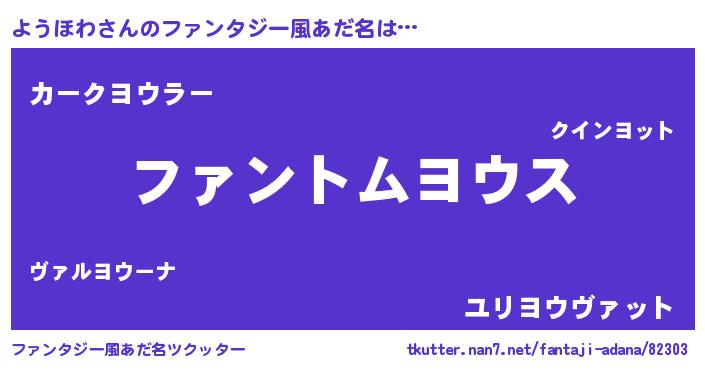 | ヒーロー風カッコイイあだ名 | 『暗黒騎士ヨウ』『正義の使者ようほわ』 |