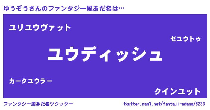 | 女子向けラノベタイトル風あだ名 | 『ゆうぞうの契約王妃』『ゆうぞう恋絵巻』 |