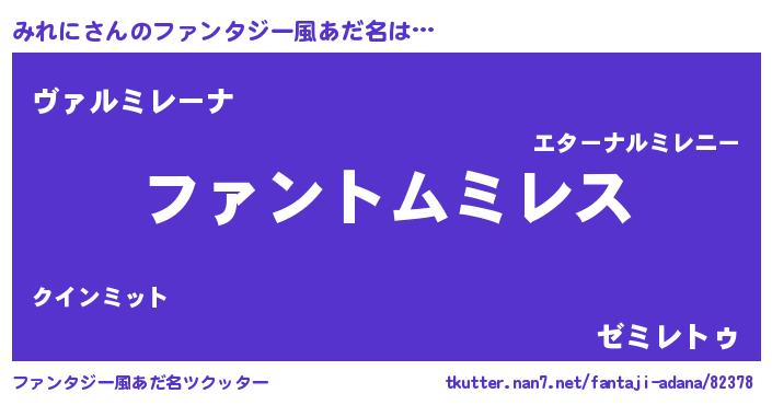| 女子向けラノベタイトル風あだ名 | 『みれにの卵を拾いまして』『闇のみれに』 |