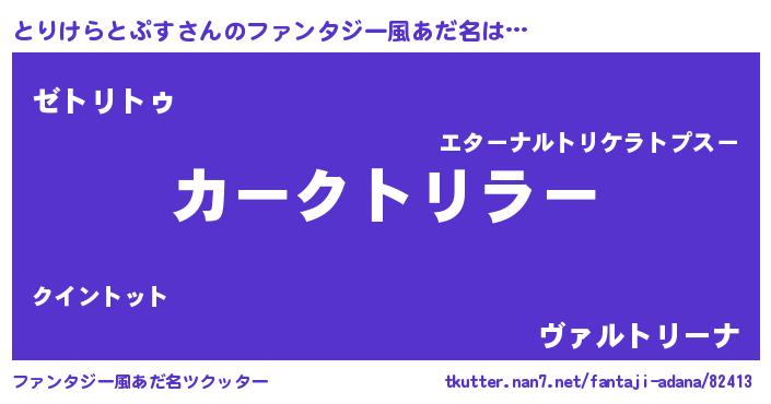 | 意味不明あだ名 | 『自称とりけらとぷす』 |