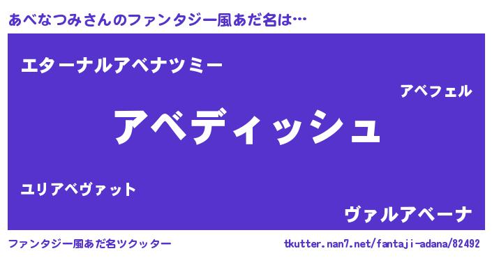 | 意味不明あだ名 | 『永久保存あべなつみ』 |