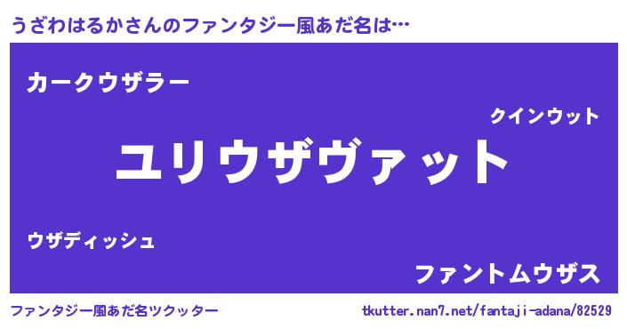 | ヒーロー風カッコイイあだ名 | 『暗黒騎士ウザ』『ネオウザワハルカ』 |