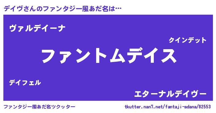 | ヒーロー風カッコイイあだ名 | 『魔戒騎士デイ』『仮面デイダー』 |