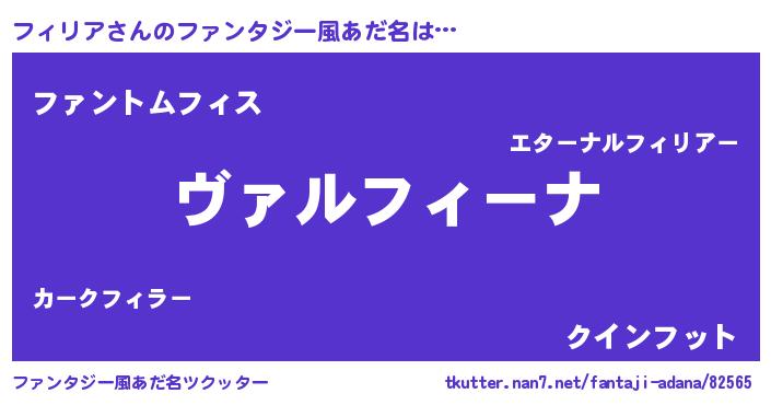 | 男性向けラノベタイトル風あだ名 | 『この素晴らしい世界にフィリアを!』 |