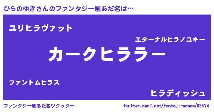 | ヒーロー風カッコイイあだ名 | 『ネオヒラノユキ』『魔戒騎士ヒラ』 |