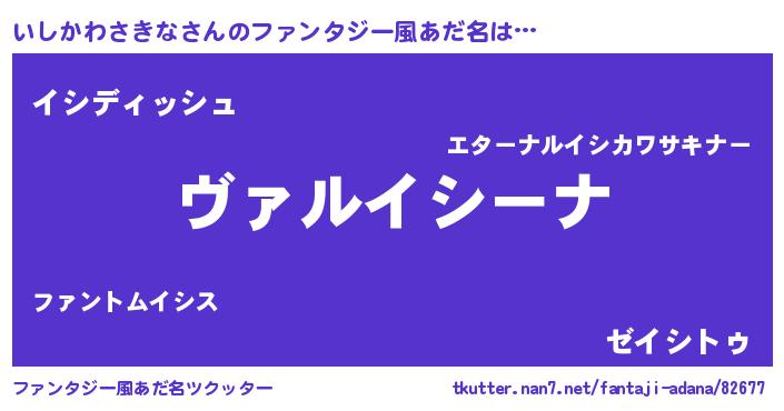 | 男性向けラノベタイトル風あだ名 | 『この素晴らしい世界にいしかわさきなを!』 |