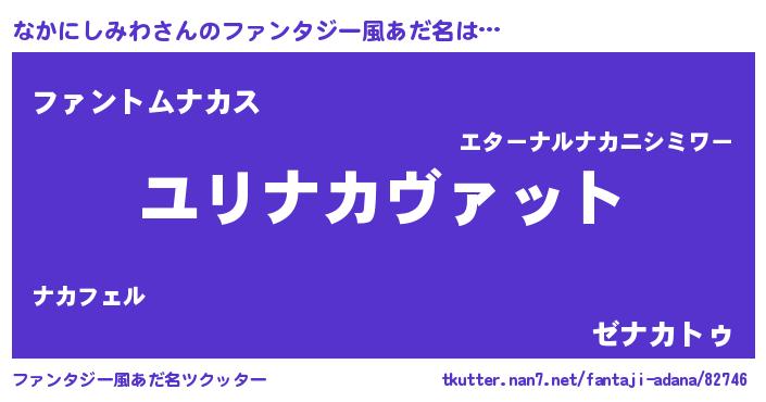 | 男性向けラノベタイトル風あだ名 | 『転生したらなかにしみわだった件』 |