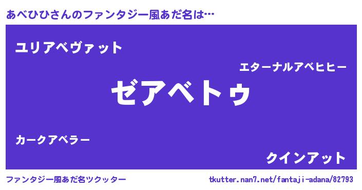 | 男性向けラノベタイトル風あだ名 | 『Re:あべひひから始める異世界生活』 |