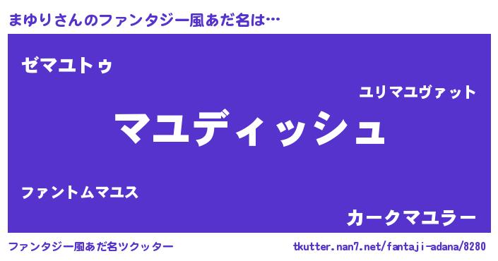 | ヘコむあだ名 | 『まゆり(苦笑)』『まゆっ子』『豆乳』 |