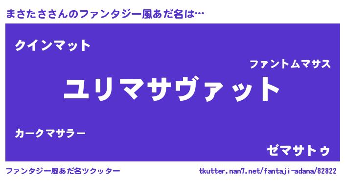 | 男性向けラノベタイトル風あだ名 | 『まさたさ~年齢イコール彼女いない歴の魔法使い~』 |