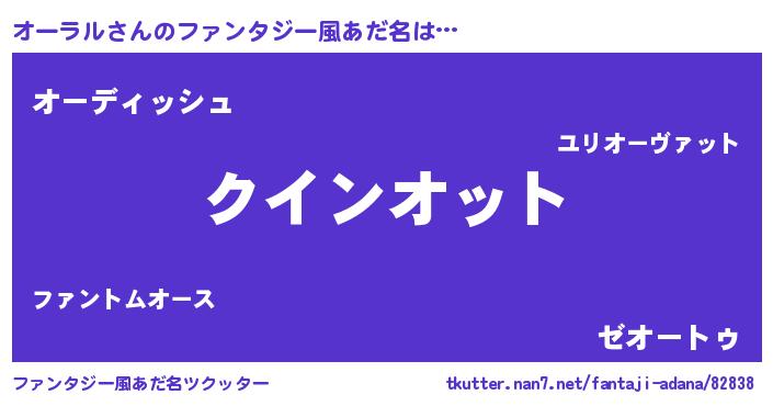 | 女子向けラノベタイトル風あだ名 | 『オーラル恋絵巻』『オーラル様がみてる』 |