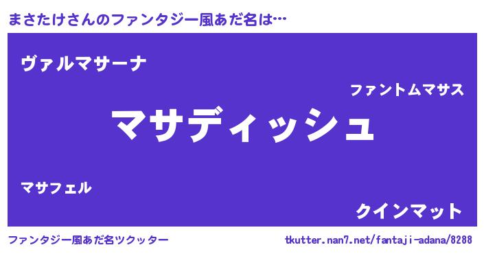 | 男性向けラノベタイトル風あだ名 | 『誰もが恐れるあのまさたけが、ぼくの専属メイドになるようです。』 |