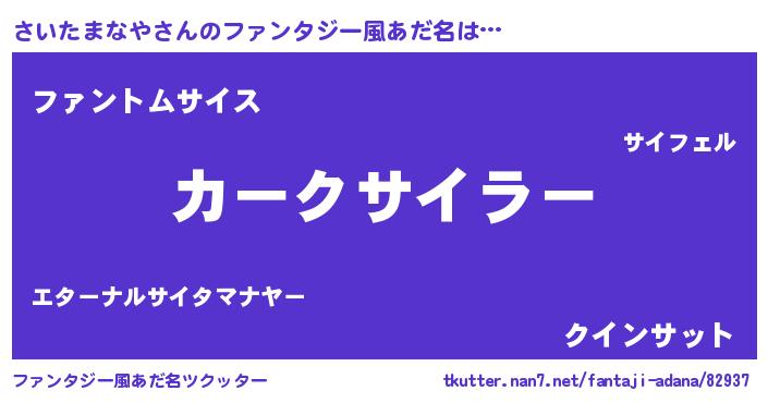 | 男性向けラノベタイトル風あだ名 | 『うちのさいたまなやが世界を掌握している!』 |