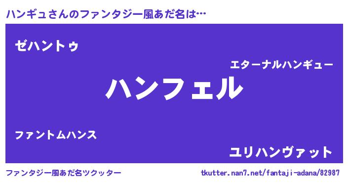 | 意味不明あだ名 | 『ペロリンハンギュ』『自称ハンギュ』 |