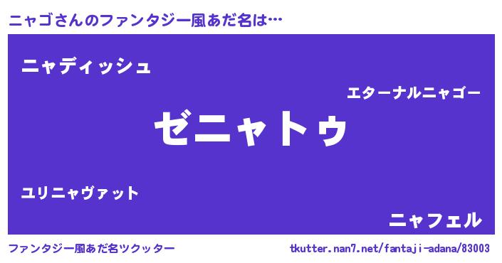 | 意味不明あだ名 | 『自称ニャゴ』『永久保存ニャゴ』 |