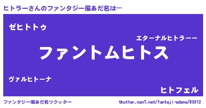 | 男性向けラノベタイトル風あだ名 | 『はたらくヒトラーさま!』 |