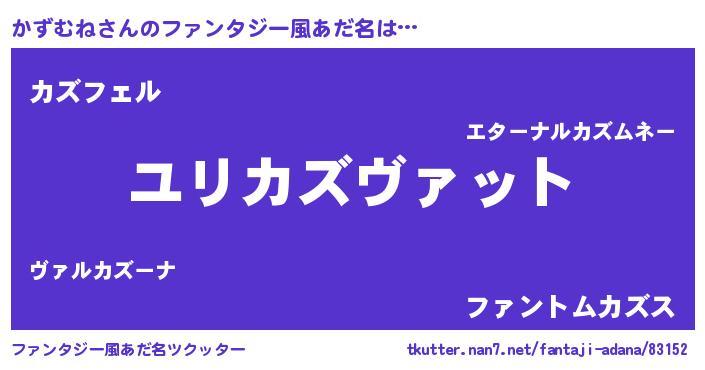 | 男性向けラノベタイトル風あだ名 | 『かずむね~年齢イコール彼女いない歴の魔法使い~』 |