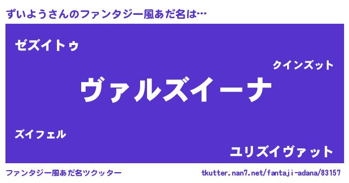 | 男性向けラノベタイトル風あだ名 | 『この素晴らしい世界にずいようを!』 |