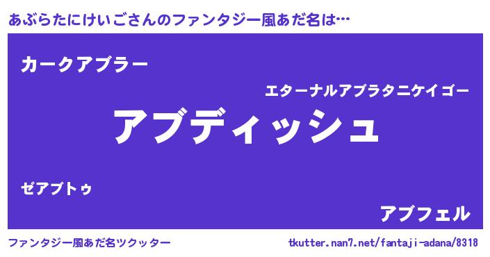 | ヒーロー風カッコイイあだ名 | 『ネオアブラタニケイゴ』 |