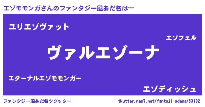 | 欧米人風あだ名 | 『ダレノガレエゾモモンガ』 |