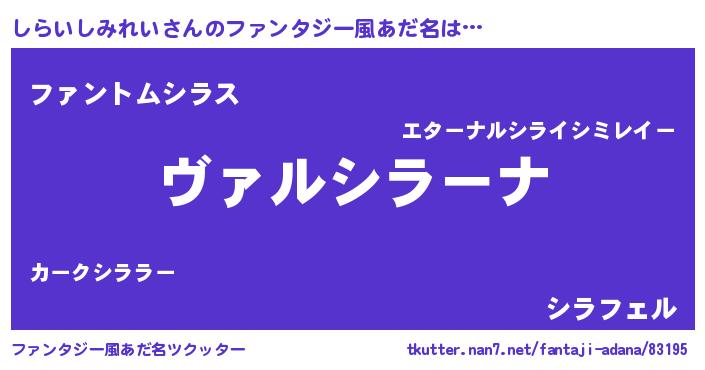 | 男性向けラノベタイトル風あだ名 | 『魔弾の王としらいしみれい』 |