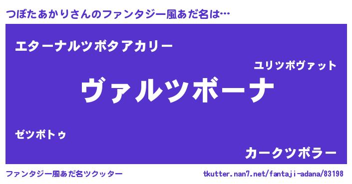 | ヒーロー風カッコイイあだ名 | 『仮面ツボダー』『最強戦士ツボタアカリ』 |