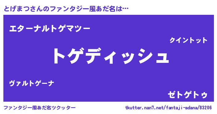 | ヒーロー風カッコイイあだ名 | 『ネオトゲマツ』『ウルトラとげまつマン』 |