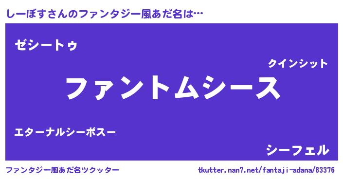 | 意味不明あだ名 | 『とにかく怪しいしーぼす』 |