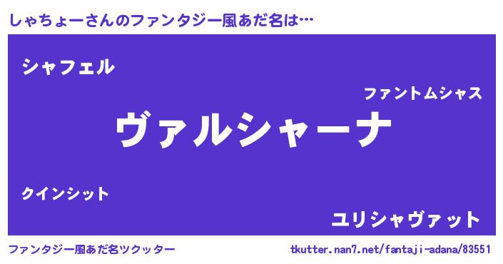 | 男性向けラノベタイトル風あだ名 | 『魔弾の王としゃちょー』 |