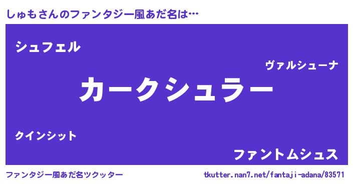 | 意味不明あだ名 | 『ペロリンしゅも』『自称しゅも』 |