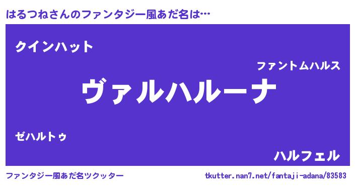 | 男性向けラノベタイトル風あだ名 | 『この素晴らしい世界にはるつねを!』 |