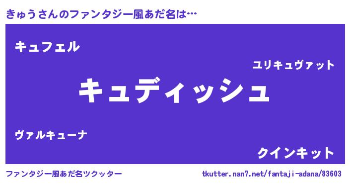 | ヘコむあだ名 | 『きゅう(震え声)』『きゅっふぃ~』 |