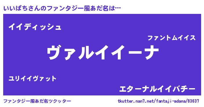 | 男性向けラノベタイトル風あだ名 | 『魔弾の王といいばち』 |