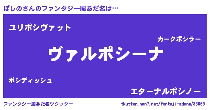 | 男性向けラノベタイトル風あだ名 | 『魔弾の王とぽしの』『ポシノスレイヤー』 |