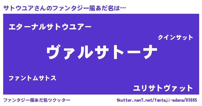 | 意味不明あだ名 | 『住所不定無職サトウユア(74歳)』 |