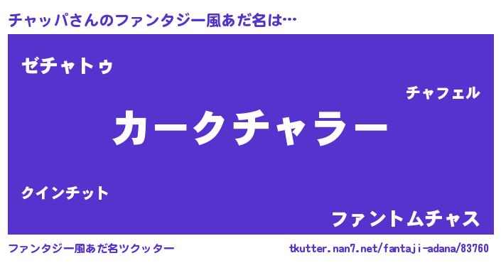 | 意味不明あだ名 | 『自称チャッパ』『ペロリンチャッパ』 |