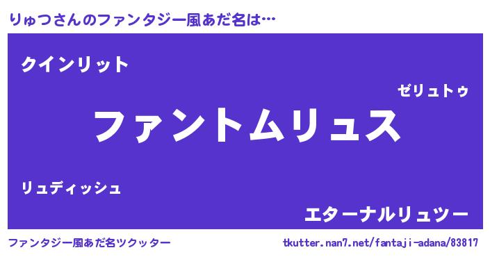 | 意味不明あだ名 | 『とにかく怪しいりゅつ』『自称りゅつ』 |