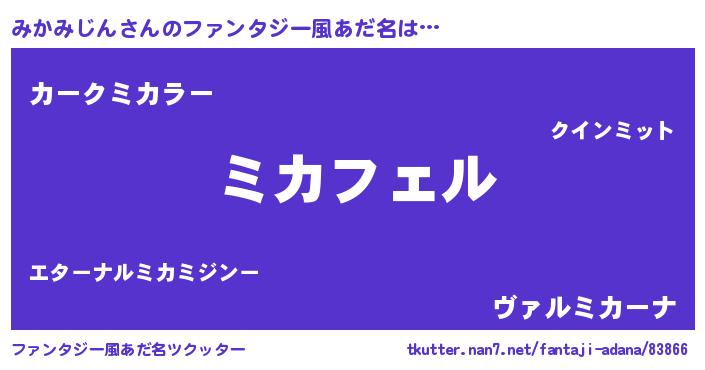 | ヒーロー風カッコイイあだ名 | 『スーパーミカミジン』『仮面ミカダー』 |
