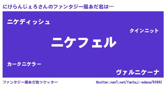 | 男性向けラノベタイトル風あだ名 | 『にけらんじぇろの憂鬱』 |
