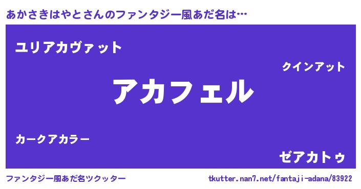 | 男性向けラノベタイトル風あだ名 | 『アカサキハヤトアートオンライン』 |