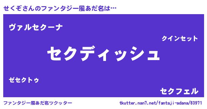 | 女子向けラノベタイトル風あだ名 | 『せくぞの契約王妃』『死神せくぞの再婚』 |