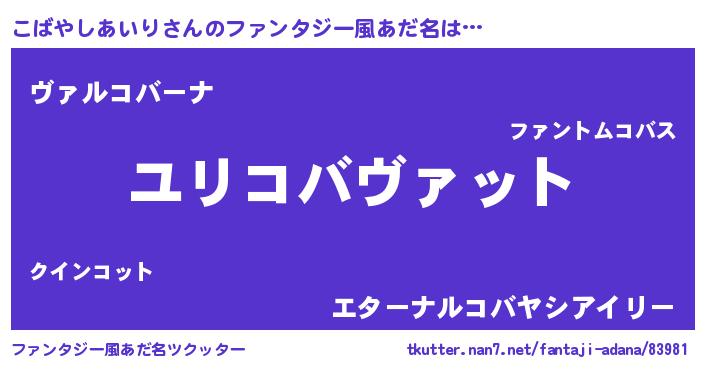 | 男性向けラノベタイトル風あだ名 | 『転生したらこばやしあいりだった件』 |