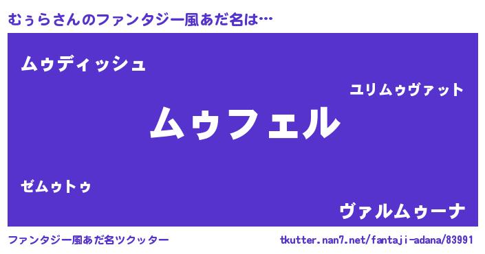 | 意味不明あだ名 | 『ペロリンむぅら』『永久保存むぅら』 |
