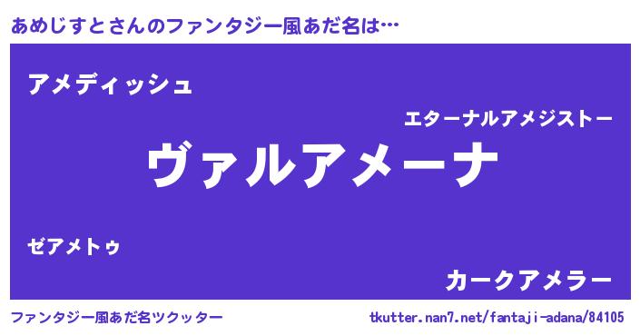 | 女子向けラノベタイトル風あだ名 | 『乙女ゲームの破滅フラグしかない悪役あめじすとに転生してしまった…』 |